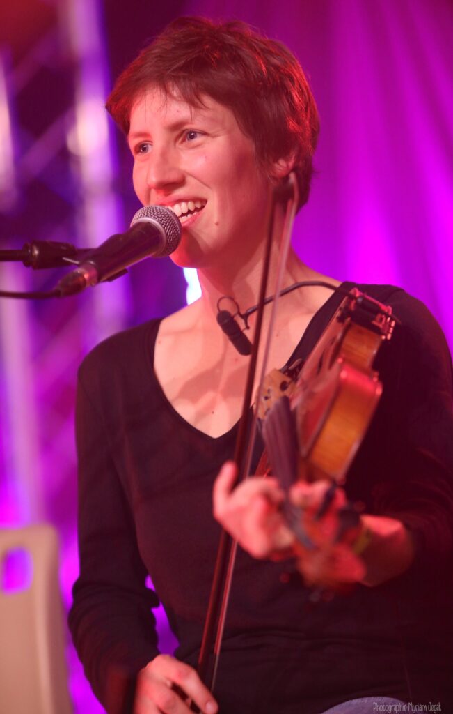 Née à Rennes, Emmanuelle est tombée petite dans la marmite des musiques de tradition orale, à cheval entre la Bretagne et le Québec.